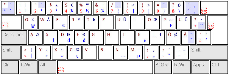 Dansk - Tysk Tastatur, die dänische Sonderzeichen über eine deutsche QWERTZ-Tastatur abrufbar.