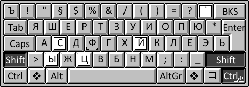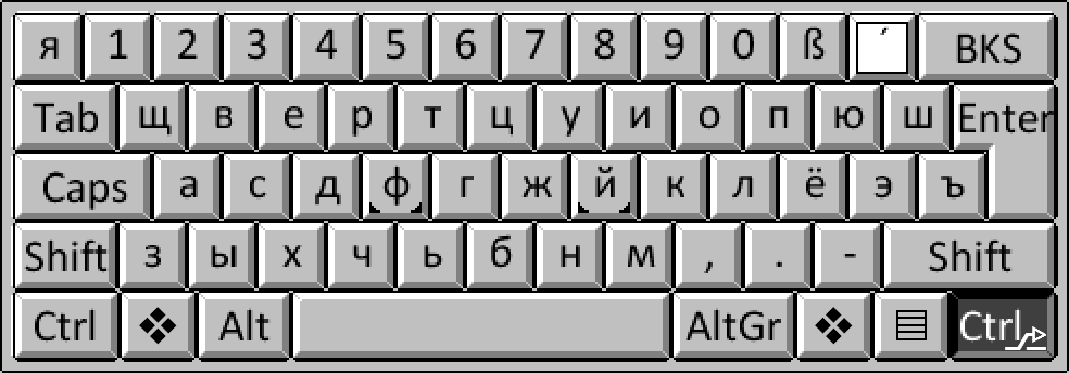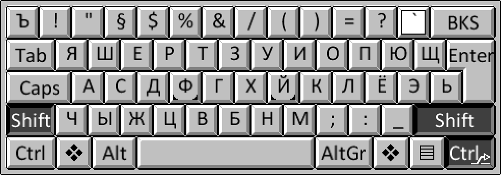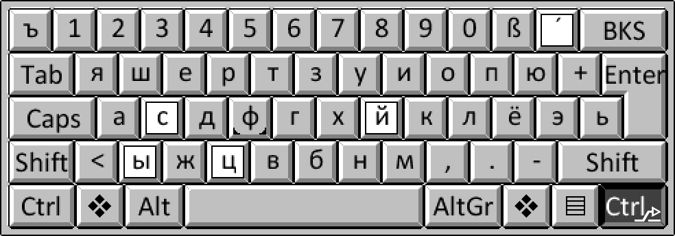 Zu den Kyrillischen Buchstaben, bzw. zu der Russischen Belegung kann man mit der Rechten Steuerungstaste umschalten.
