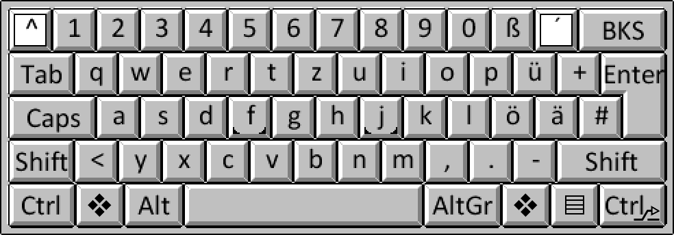 Die Tastatur, wenn die Taste 'Rechte Strg ⎇' (Kana) deaktiviert ist: