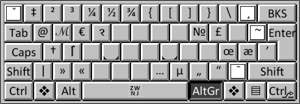 Erneutes drücken der ⎇ (Rechte Steuerung) deaktiviert die Umschaltfunktion wieder.